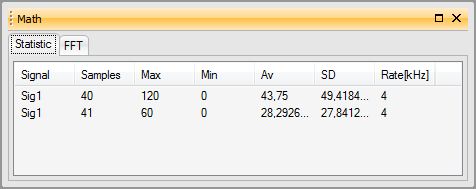 Anzeigenstatistik der einzelnen Sensorsignale.